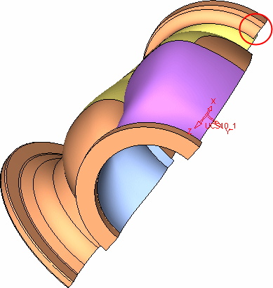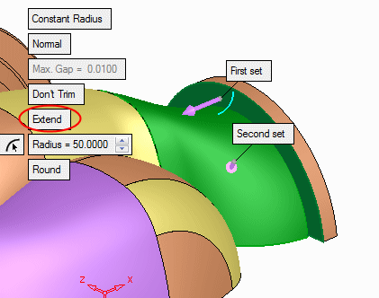 The fillet will now be extended and trimmed so that it covers the area circled below with Trim.