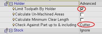 The Limit Toolpath By Holder – Checked parameter enables you to define whether or not to limit the machining by the tool holder.