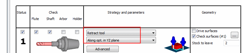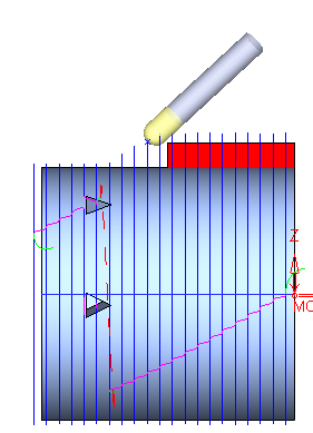 Notice that since the Flip step over option is selected, the machining starts from the other side. In order to prevent the gouging of the check faces (box), the tool moves away from the geometry and all these movements are performed on the YZ plane, maintaining a constant X value.