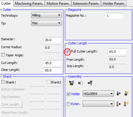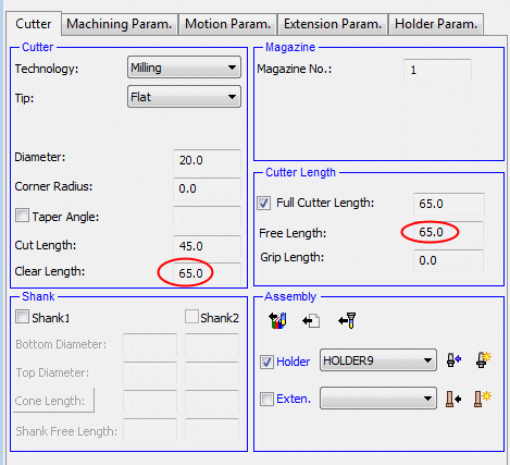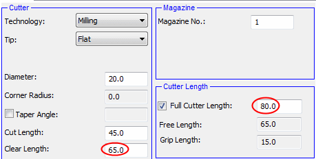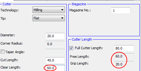 If a cutter has no shank definition, the Clear Length and Free Length are always equal.