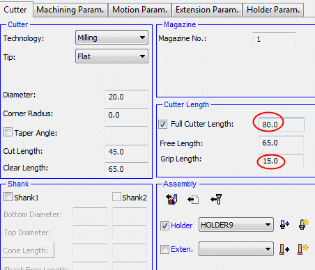 Set the Full Cutter Length to 80. Note that the Grip Length changes accordingly.
