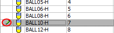 An edited row is marked with the pen icon in the Status field as shown in the following image.