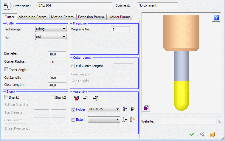 The cutter display dynamically changes according to the manipulation of the cutter and holder parameters.