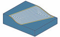Contact Mode – The motions are calculated on the geometry itself. After toolpath creation, the curves are smoothed or spiraled. As a result, some points might no longer be positioned on the mesh. To force the points back onto the mesh, a snapping algorithm is called at the end of the toolpath creation process. The machining area is defined by the containment curve or the boundary of the mesh.