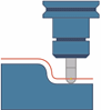 Tool Center Mode -Center point mode creates an offset (with the value of the tool radius), calculates the toolpath on the offset, and projects the points along the tool axis onto the machining surface. It allows a collision-free pattern generation, even in "sharp inner corners" or strongly curved "multiple surface patch" areas.
