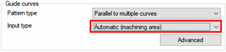 Set the Input type for the multiple curves to Automatic (machining area). With this setting, the system will assume the curve according to the selected machining surfaces boundaries.