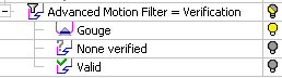 A new leaf has been added to the Advanced Motion Filter = Verification branch in the Navigator tree.