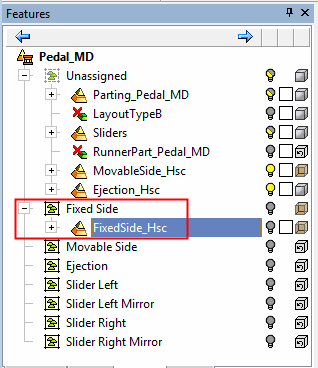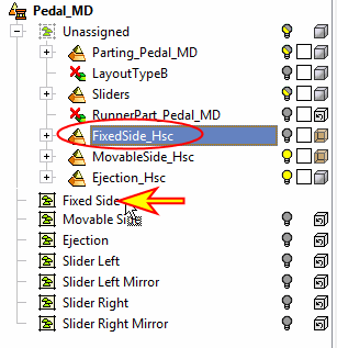 Drag the FixedSide sub-assembly and drop it under the Fixed Side group.