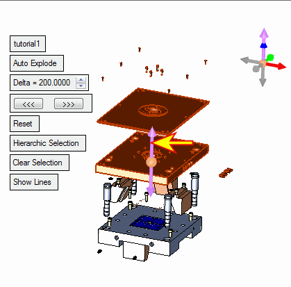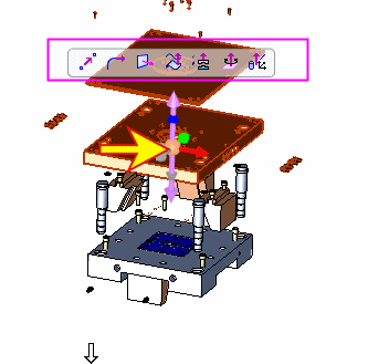 Pick the arrow and move the selected components up or down along the arrow direction.