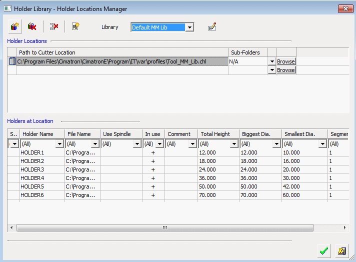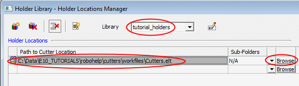 The default library is displayed in the dialog (similar to the Cutter Location Manager).