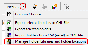 From the menu, click Manage Holder Libraries and Holder Locations.