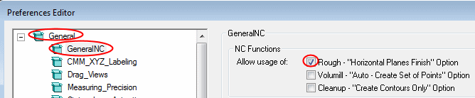 Before loading the file, ensure that the Rough - Horizontal Planes Finish checkbox is marked in the General NC Preferences.