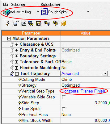 Edit the procedure. Change the technology to Volume Milling Rough Spiral.