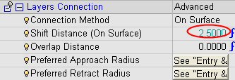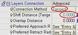 Set the Layers Connection Method to Tangent and the Shift Distance to 0.