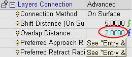 The Overlap Distance controls the distance between the approach and retract points of a certain layer.