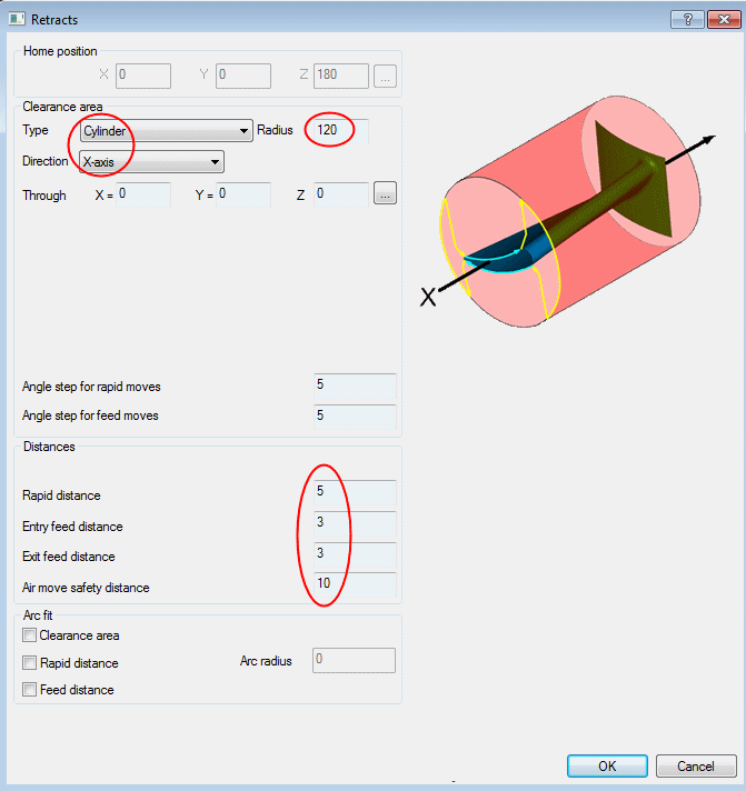 Set the Clearance Type and Direction to Cylindrical and - X-axis.