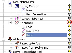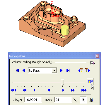 To control the velocity of the tool motions in the movie, drag the slider left or right of the center marker.