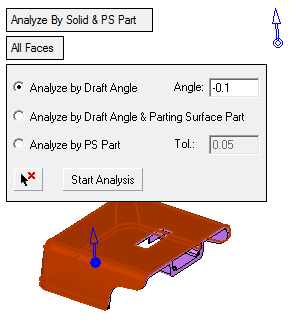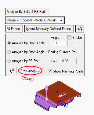 Click Start Analysis to detect all relevant faces that are suitable for the Z open direction: