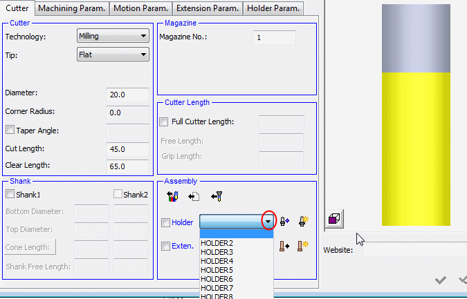 This cutter has no holder. Do not select one of the holders included in the file, which are visible in the Assembly > Holder dropdown.