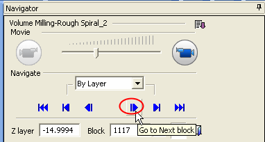 While in the layer step, click the next block button to navigate the tool forwards within the current layer by block step.
