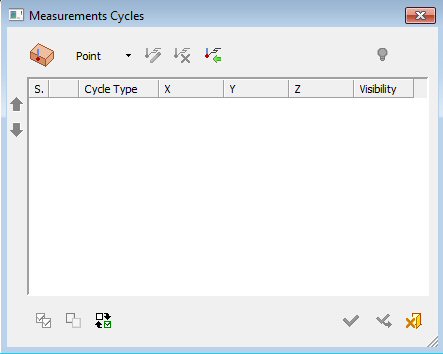 Click the Cycle Data value under the Geometry or on the Measurement Cycle value in the Motion Parameters dialog to open the Measurement Cycles dialog.