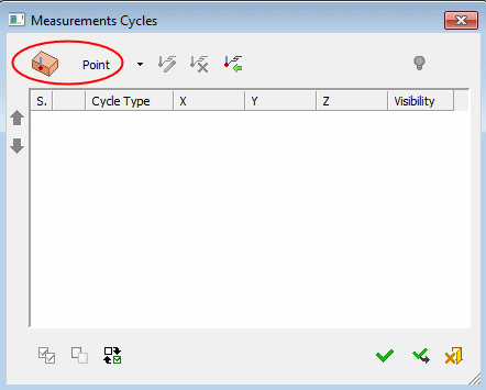 Invoke the required measurement cycle to display the relevant cycle dialog. In this case, click the Point button.