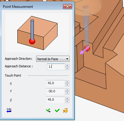Pick a point on the face and set the Point Measurement dialog parameters as shown in the following image:
