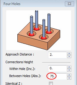 Set the Between Holes parameter to 75 to ensure it is above the ridge top.