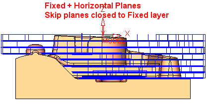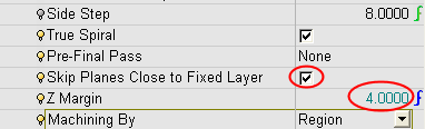 The Skip Planes Close to Fixed Layer option enables you to skip the machining of planes that are within a specified Z distance (less than 4 mm in our case) below a fixed layer (too close to the major layer).
