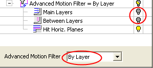 All bulbs associated with the Motions Filter display are automatically shown. This rule was set to avoid conflicts in the displayed toolpath.