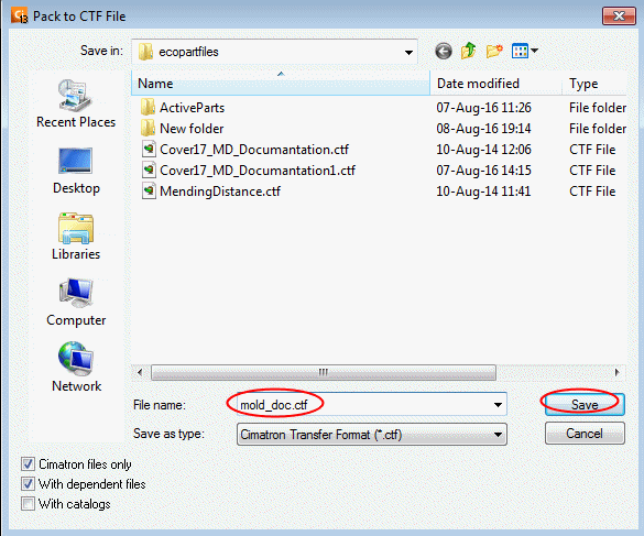 Close the report and click the Pack to CTF button to pack the entire involved parts to CTF file.
