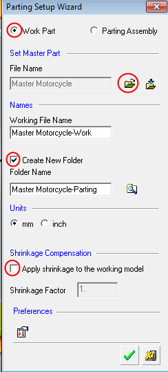 OpenOpen the Parting Setup Wizard, and select the Master Motorcycle.elt part file located in the following folder: