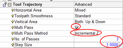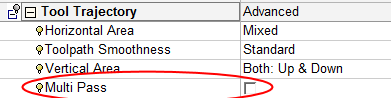 Notice the Multi Pass parameter in the Tool Trajectory section.