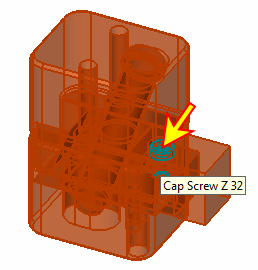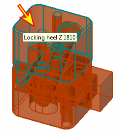 All components are selected by default. Deselect Cap Screw Z32 and Locking Heel Z 1810. Deselected components are displayed in Wireframe mode.