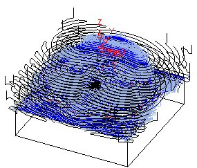 The actual motions here are controlled by the post (according to the machine used). A direct phantom line is displayed to represent the mill or drill order. In many cases, the line cuts through the part but this is not a real machine motion.