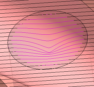 In some cases, it is more efficient to use motion editing of the procedure rather than editing it. In this case, we are projecting the resulting toolpath on the missing surface(s), rather than adding the missing cap surface(s) by editing the procedure’s input and re-executing.