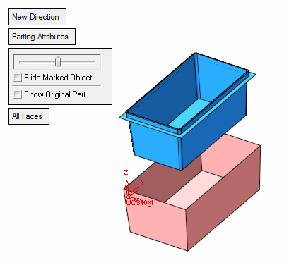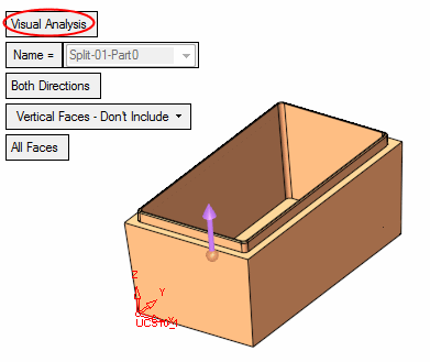 Select Parting > QuickSplit. Using the slider, slide the part to see the parting direction.