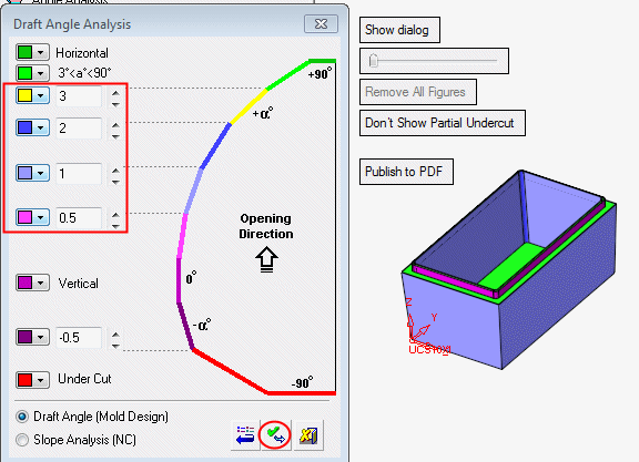 Now select Parting > Draft Angle Tools > Draft Angle Analysis.