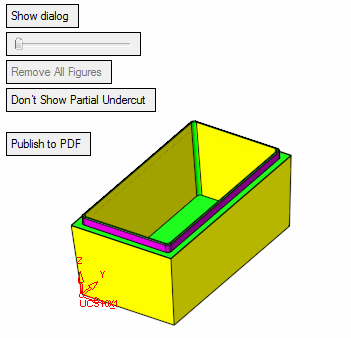 The corresponding color in the dialog (purple) indicates the top rib of the part contains vertical faces (no draft angle).