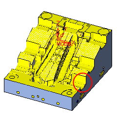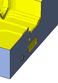 The Excessive Material option only shows the stock that is thicker than the desired offset defined by the procedure’s surface offset. It displays those areas where the cutter could not reach (due to the holder or cutter being too big).