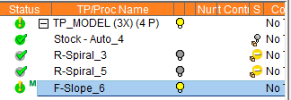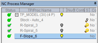 The system restores the original toolpath and removes the M flag from the Process Manager as shown in the following images:
