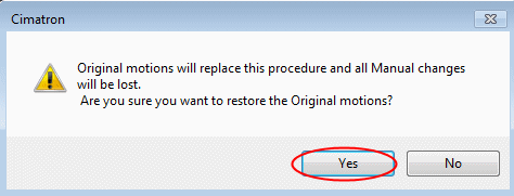 The Restore Original operation enables the user to cancel all the operations that were performed on the toolpath using the Motion Editor and load the original toolpath.