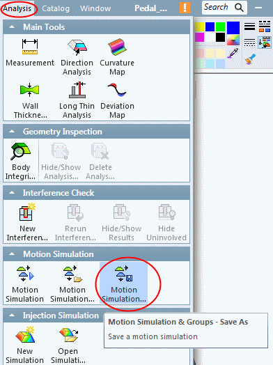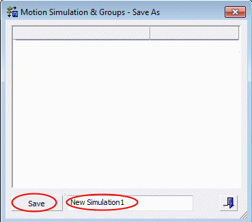 To save the created groups and current simulation status, select Analysis > Motion Simulation > Motion Simulation & Groups - Save As.