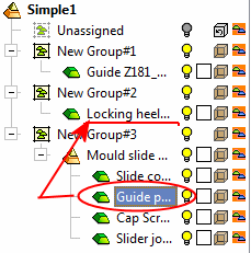 Use the slider or the play button to examine the motion. (Notice the slide core motion due to the Guide pillar and Guide Z181.)