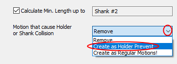 Open the Motion That Cause Holder or Shank Collision dropdown menu. There are three options that tell the system what to do when collision is detected.