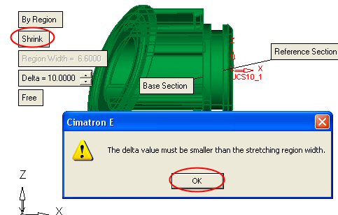 The message, “The Delta value must be smaller than the stretching region width," appears.