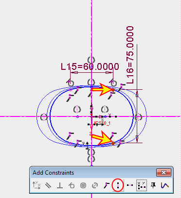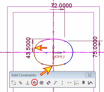 Set Same X constraint between the points indicated by the arrows in the picture below: