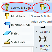 From the MoldDesign Guide, click the icon Add Mold Comp > Screws & Bolts.