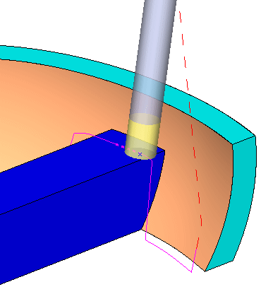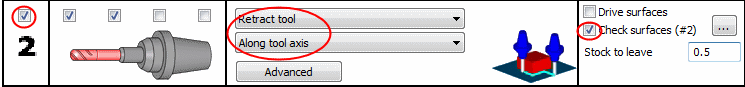 This setting stops the tool retracting along its axis whenever a gouge is detected, within 0.5 mm of the check surfaces. The tool remains retracted until a point where there is no longer a gouge.