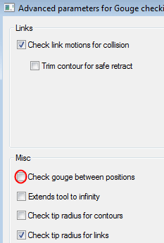 Unmark the Check Gouge Between Positions check box (under the Advanced option).